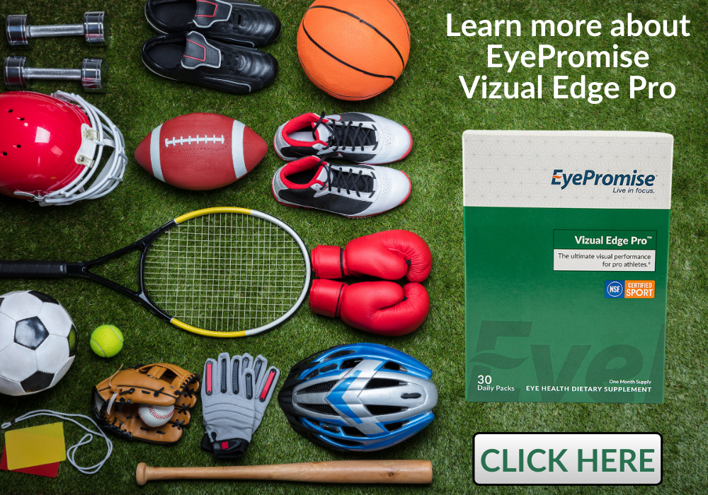 You might be wondering, “How can I make these improvements?” Research indicates that taking supplements containing high amounts of high-quality natural zeaxanthin will do just that. EyePromise Vizual Edge Pro is clinically designed to deliver the nutrients your eyes need to improve your glare and light sensitivity, contrast sensitivity, dryness, and visual processing speeds. As an NSF Certified for Sport vitamin, you can be sure what you see on the label is what you get, nothing missing, no extras. Trusted by professional and Olympic athletes, Vizual Edge Pro is the whole performance package.